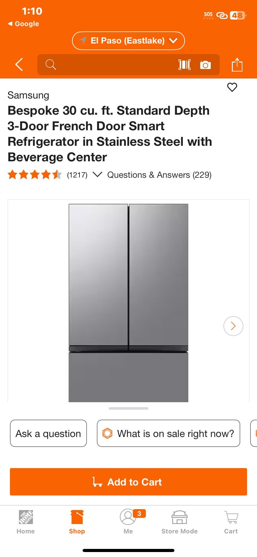 Samsung Bespoke 30 cu. ft. Standard Depth 3-Door French Door Smart Refrigerator in Stainless Steel with Beverage Center