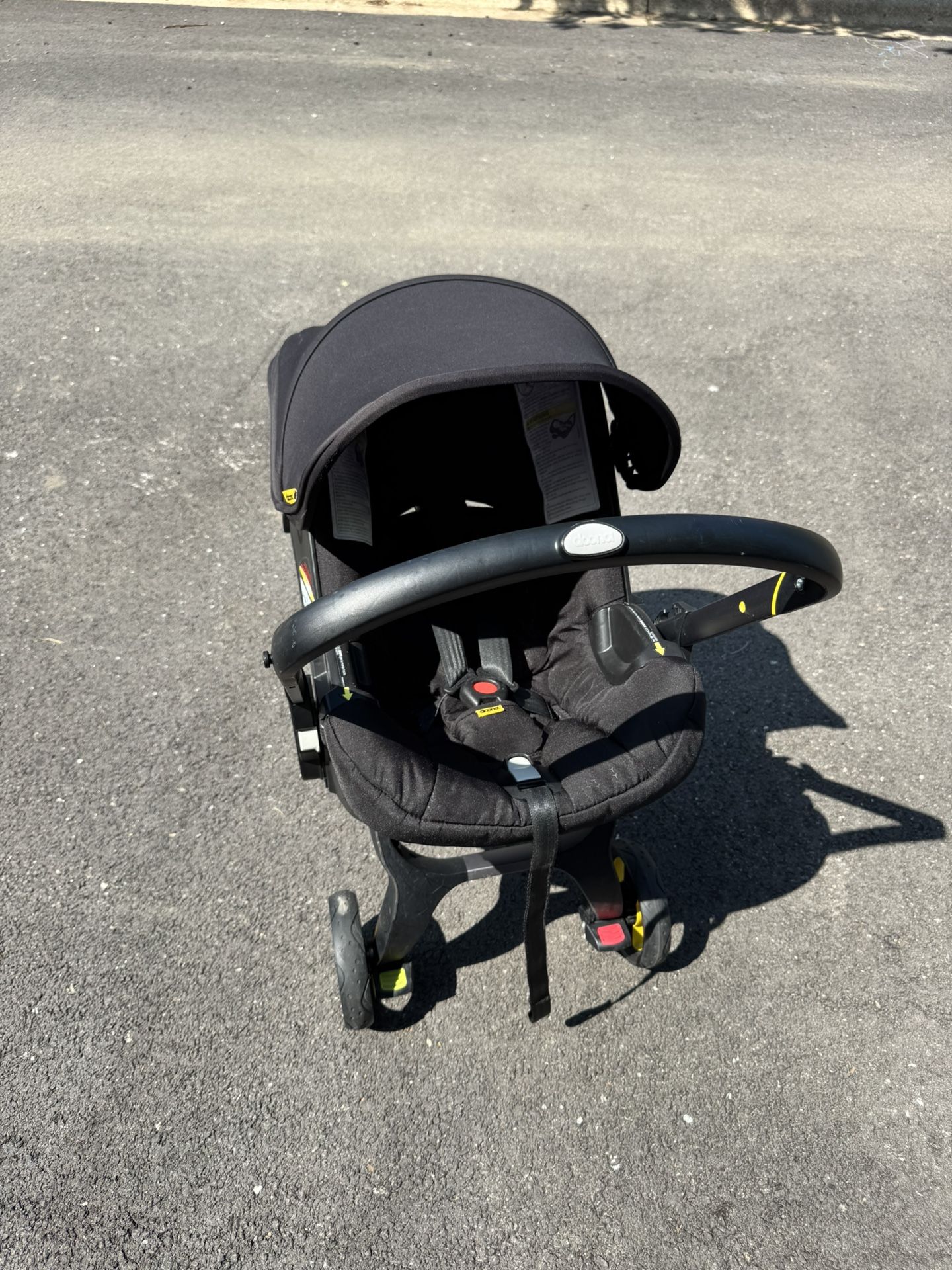 Gently used Doona+ Infant Car Seat/Stroller in Nitro/Black. Used for a couple of years, then safely stored away. • Recently professionally cleaned, including the cushioning and underside. • Comes with 2 LATCH car bases for added flexibility between vehicles. • Includes a brand new vehicle seat protector. • Fully functional — no issues or defects. • Smoke-free, pet-free home. A great all-in-one solution for parents. Ready for immediate use.