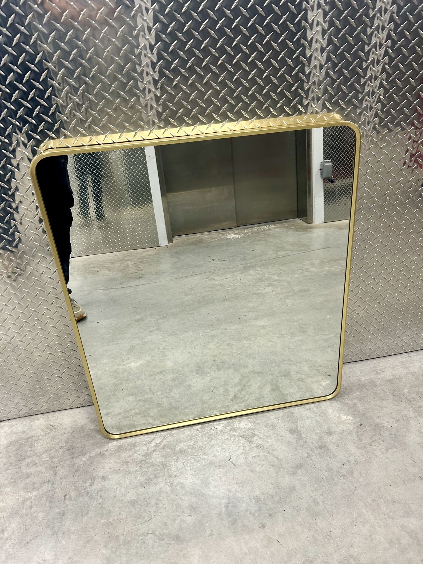 Nice modern golden mirror, aluminum frame. Like new! Measures: 36” H x 32” W