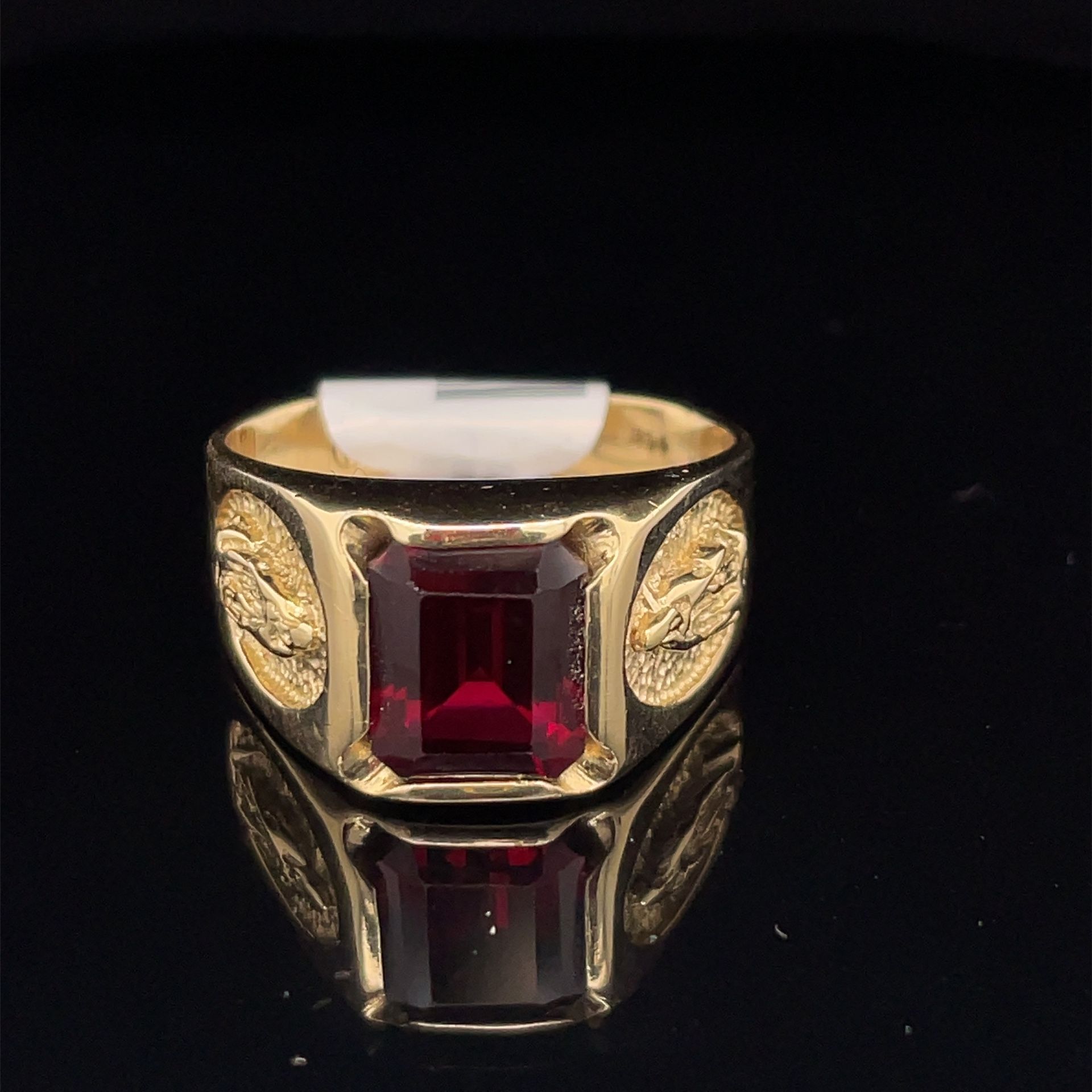 14KT Yellow Gold Garnet Stone Virgin Mary Ring 7.34g Size 10 1/4 I-666