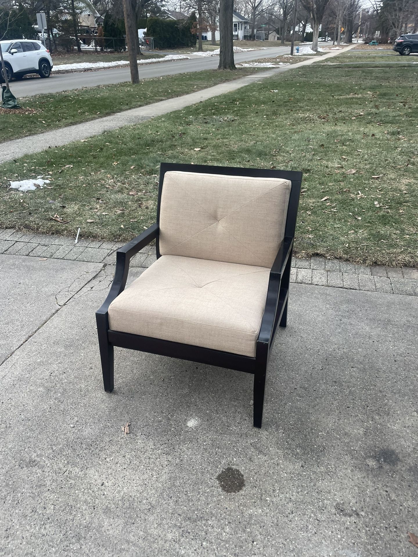 Padded Upholstered Living Room Chair, Solid Wood Frame, like new, size listed on pictures. $30