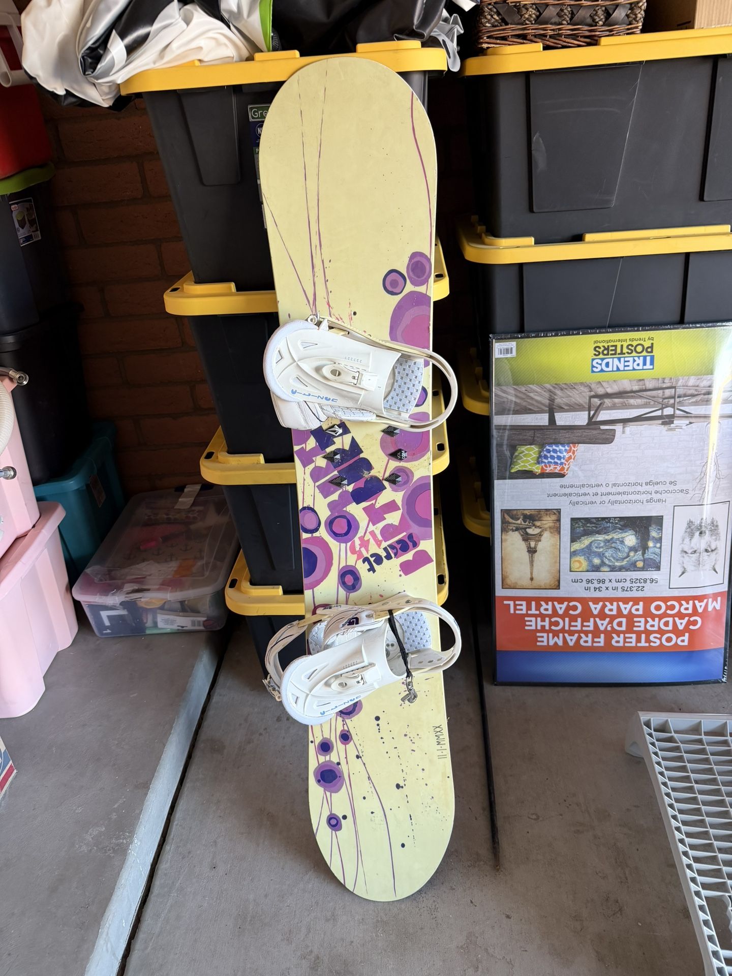 Snowboard , discoloration but still works great. Great bindings included. I was going to sticker it up and keep it but don’t plan to go anytime soon. 40