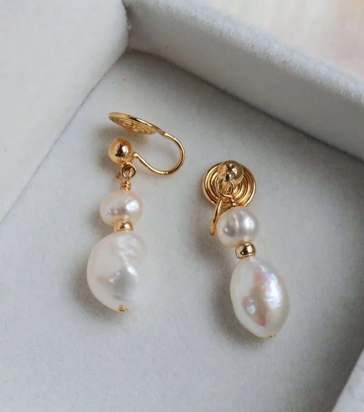 Ear drop height 1.4 inches Ear drop width 0.3 inches Gentle clip on One-size Gold tone