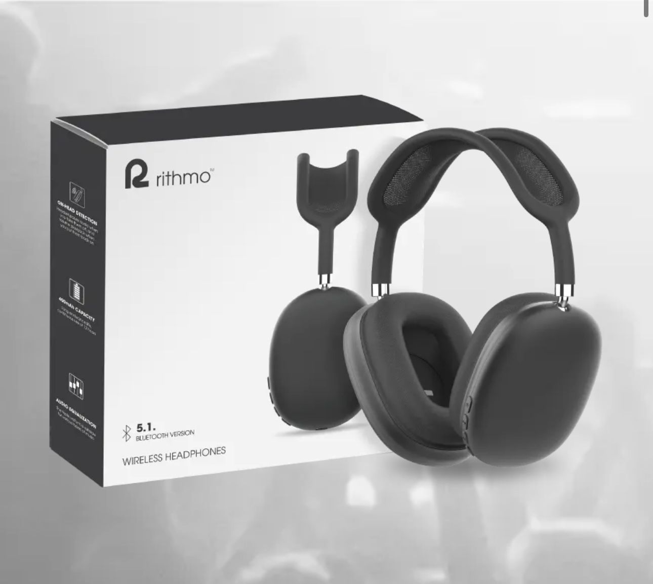 Brand new, still in the box! These are the Rithmo over-ear headphones. They are a great, affordable option for music, working out, or travel. Wireless: Connects easily with Bluetooth 5.3 Comfortable: Over-ear design with a modern, sleek black look. Good Sound: Clear audio with built-in noise isolation features. Condition: New in Box