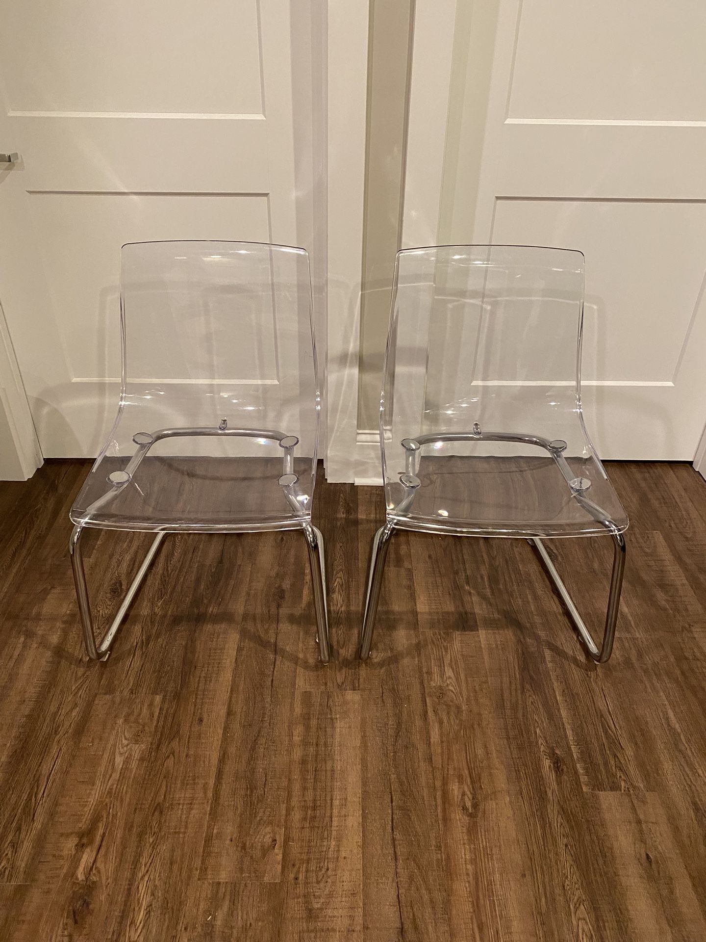 Pair of Clear & Chrome IKEA Tobias Chairs
