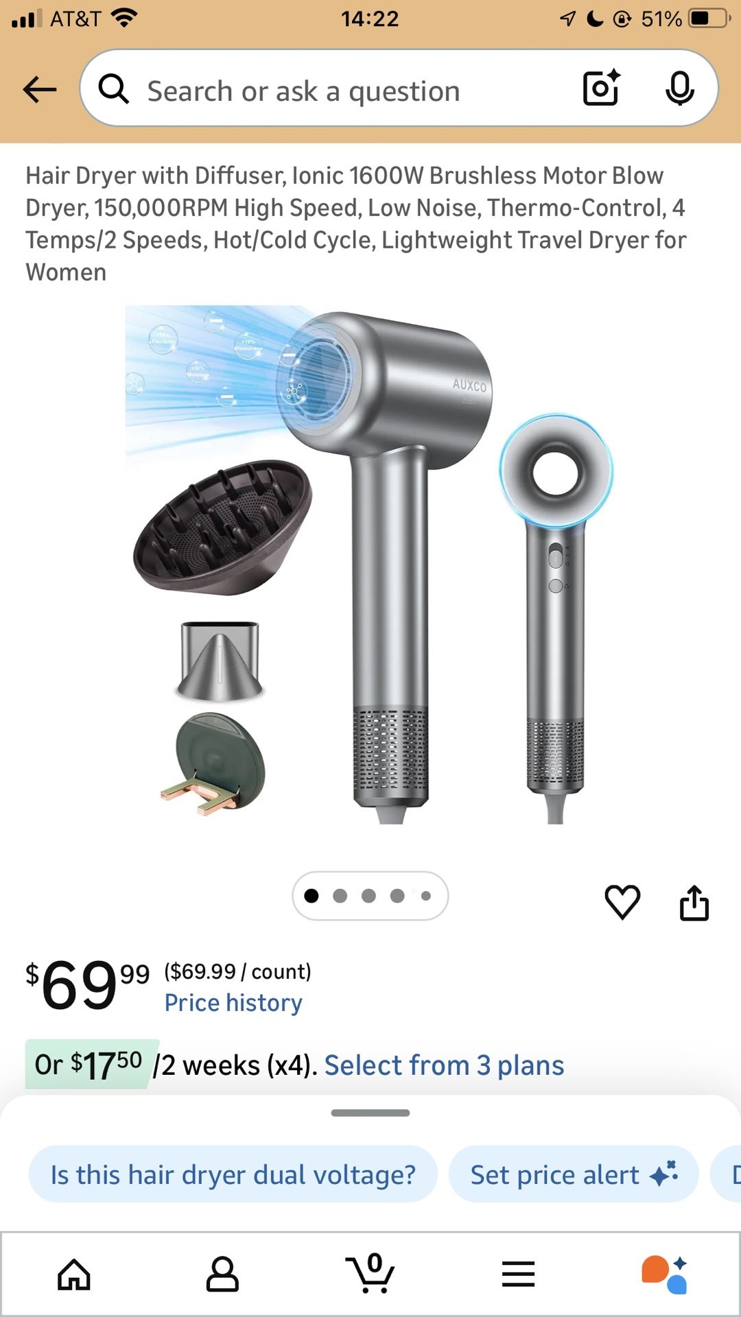 AUXCO Ionic 1600W Brushless Motor Hair Dryer with Diffuser