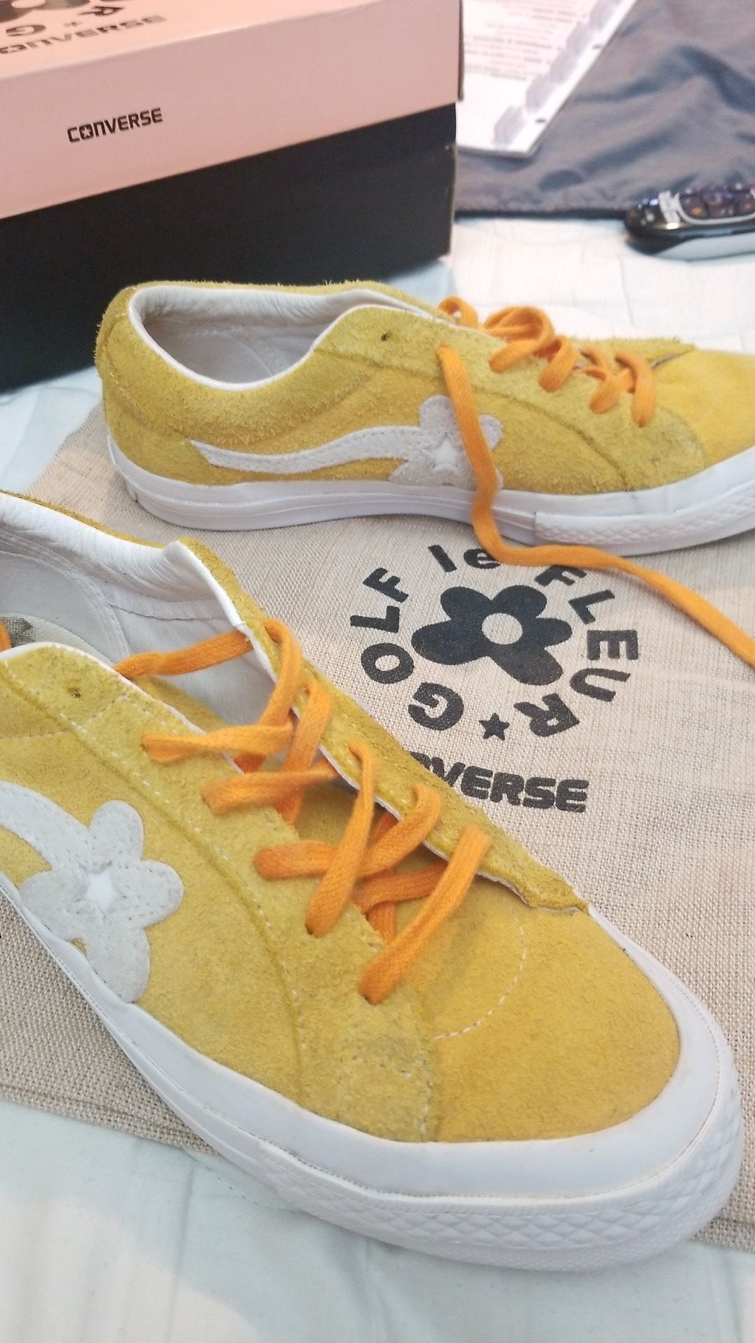 these are used Converse golf Le Fleur unisex men's 7 women's 9 size they are still in great condition just a bit dirty if I spend time cleaning them and make them look like new again then I will sell them for more I don't have time for that pick up in Turlock no holds or trades again they are used so they are a bit dirty please see pic