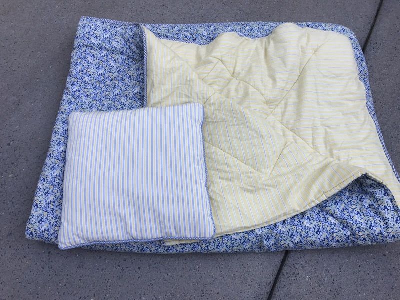 Lauren Ashley twin bedding with pillows and two matching cornice