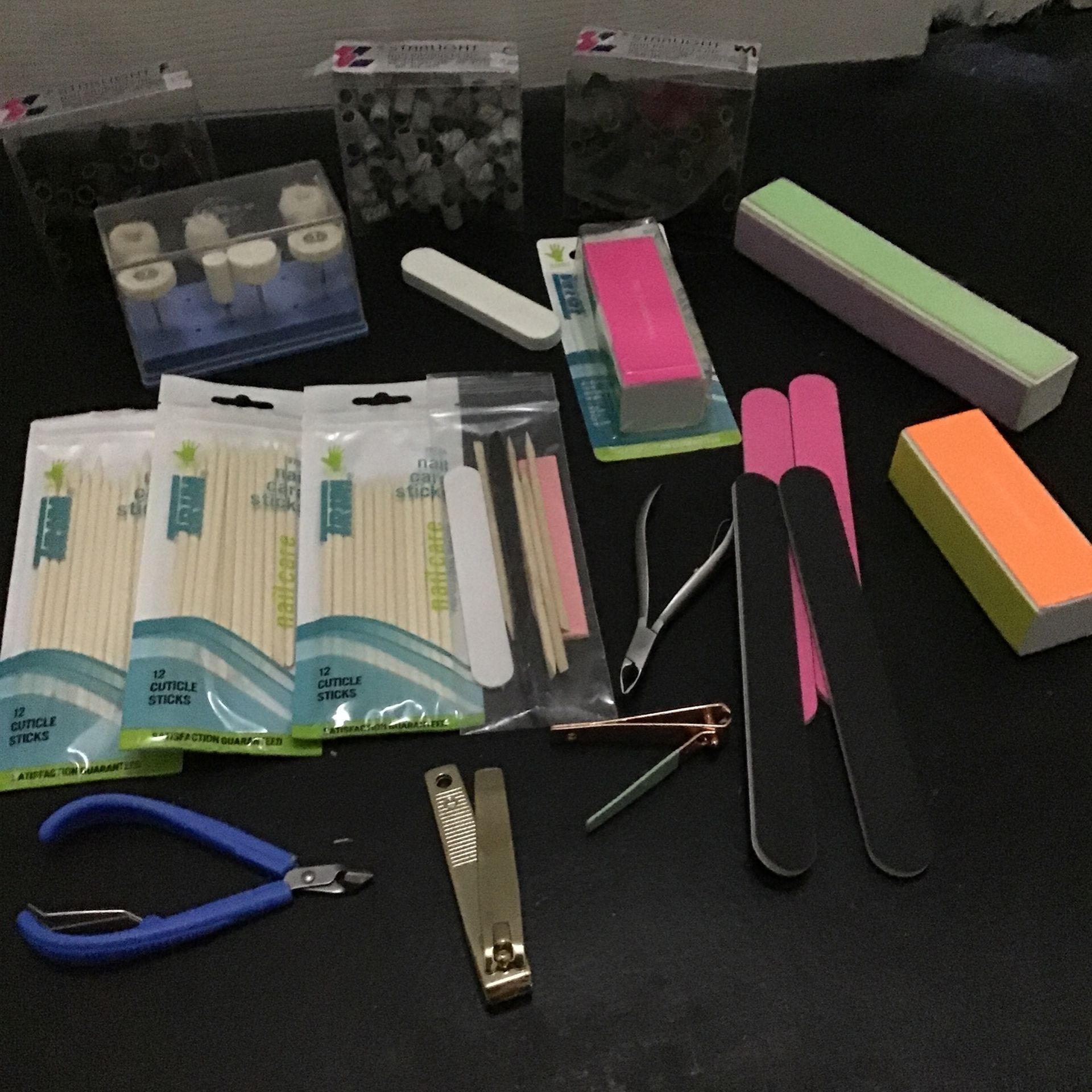 This is all brand new items. Nail files, sand paper for drill, Trim cuticle nail sticks, nippers, nail trimmers, and buffing blocks
