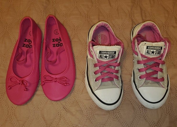 Two pairs of used shoes for girls size 11 One Converse and other Zoe Zac branded Come from a smoke and pet free home. See my other listings for more girl's stuff. Tambien hablo español.