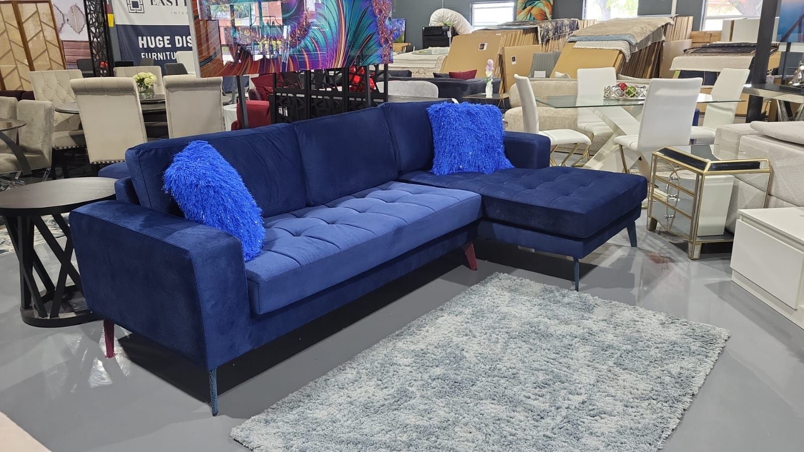 NEW SECTIONAL BLUE VELVET SHINY 115x60