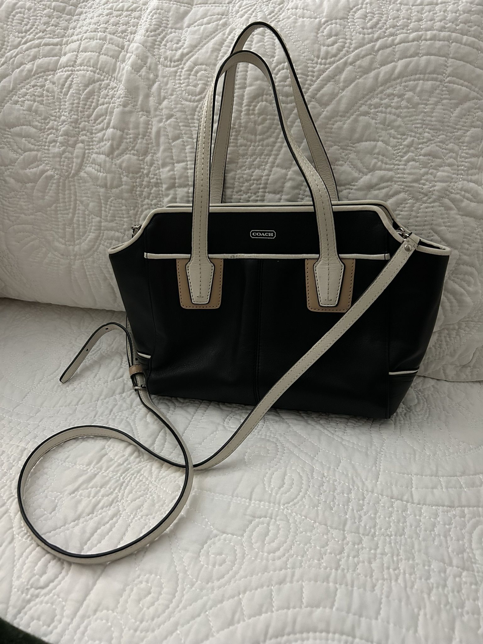 Authentic Coach TAYLOR SPECTATOR LEATHER BETTE MINI TOTE CROSSBODY Very good condition inside and out! Inside zip and multifunction pockets Zip-top closure, fabric lining Outside open pocket Handles with 5" drop Adjustable strap for shoulder or crossbody wear 13" (L) × 8" (H) x 3 3/8" (W) Clean Smoke-free, pet-free home! Great gift idea! $55. Firm