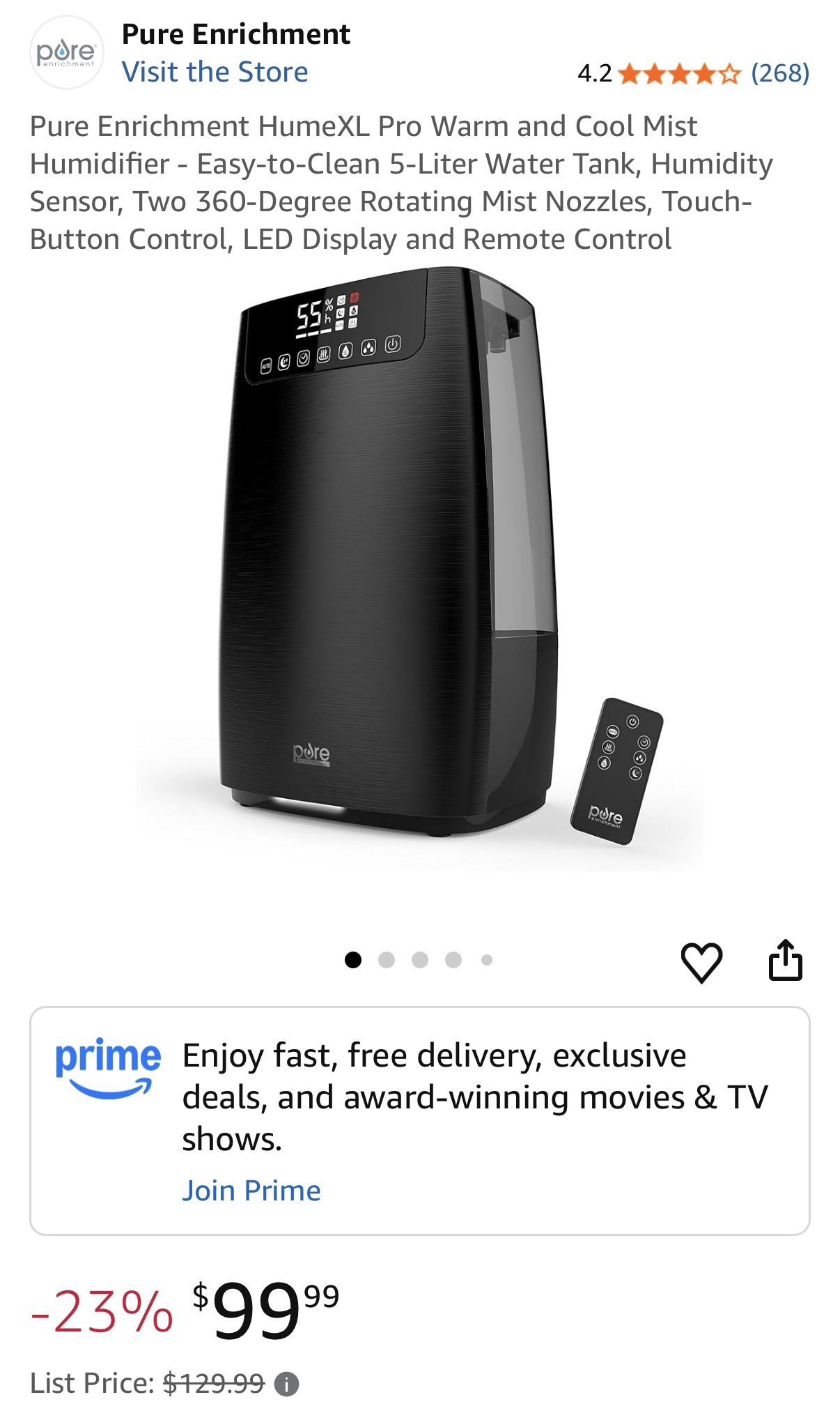 Pure Enrichment HumeXL Pro Warm and Cool Mist Humidifier - Easy-to-Clean 5-Liter Water Tank, Humidity Sensor, Two 360-Degree Rotating Mist Nozzles, To