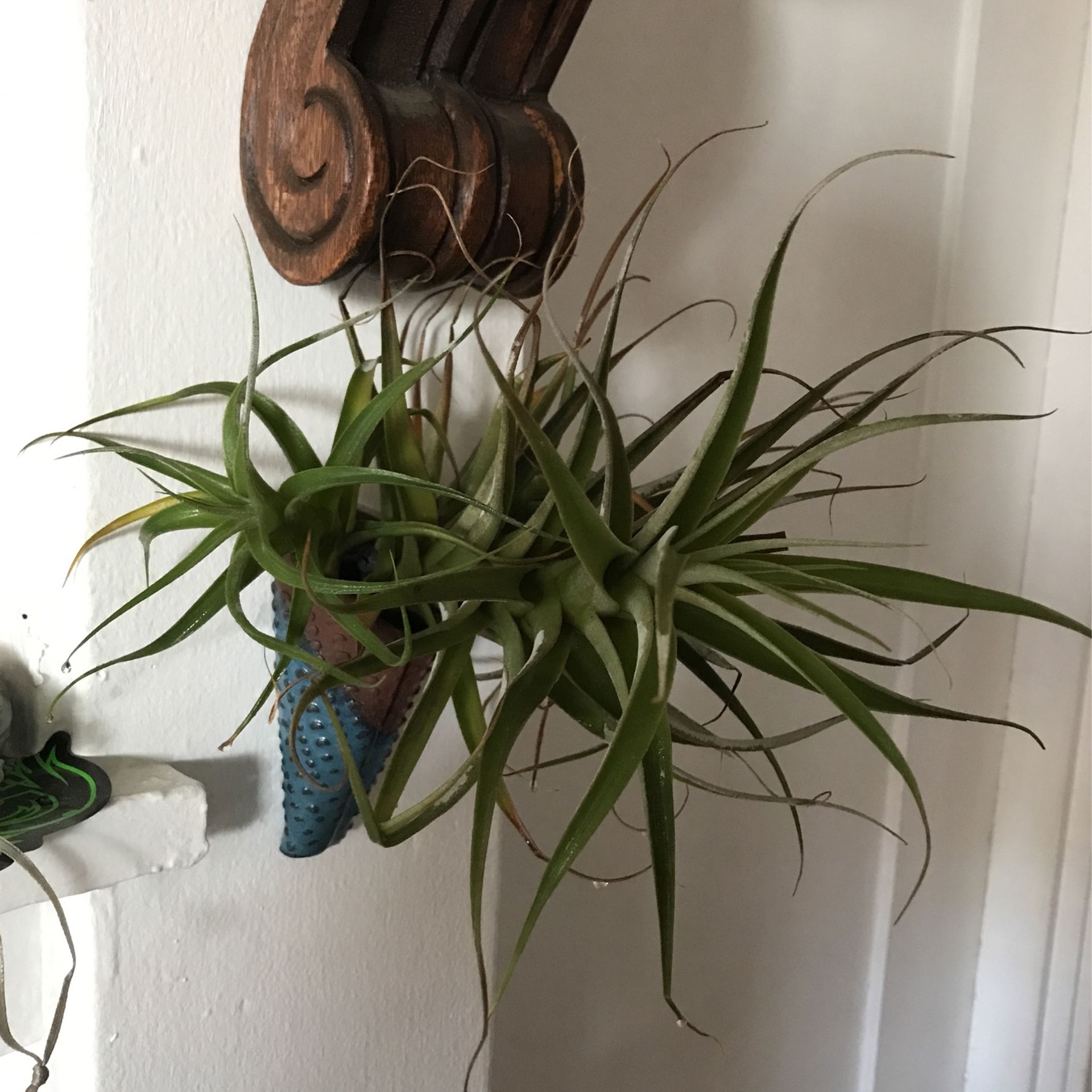 Handmade pottery full of healthy tillandsias . Meant to hang on the wall inside or out . A one of a kind original piece of pottery. $20