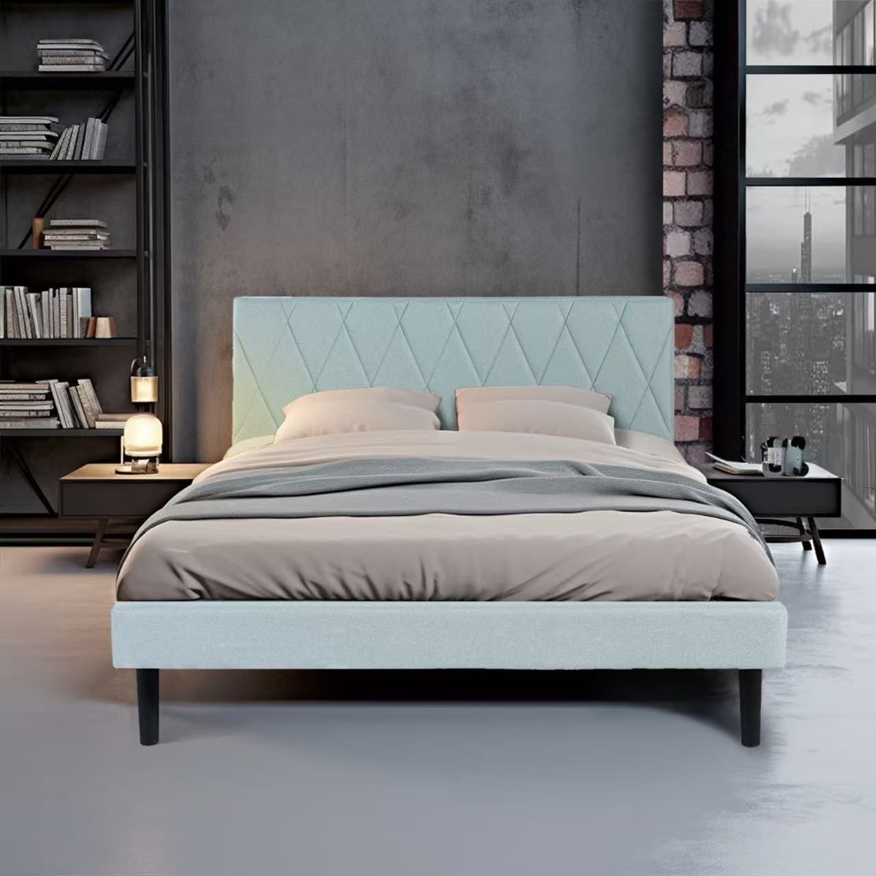 Full size bed frame. Light grey.