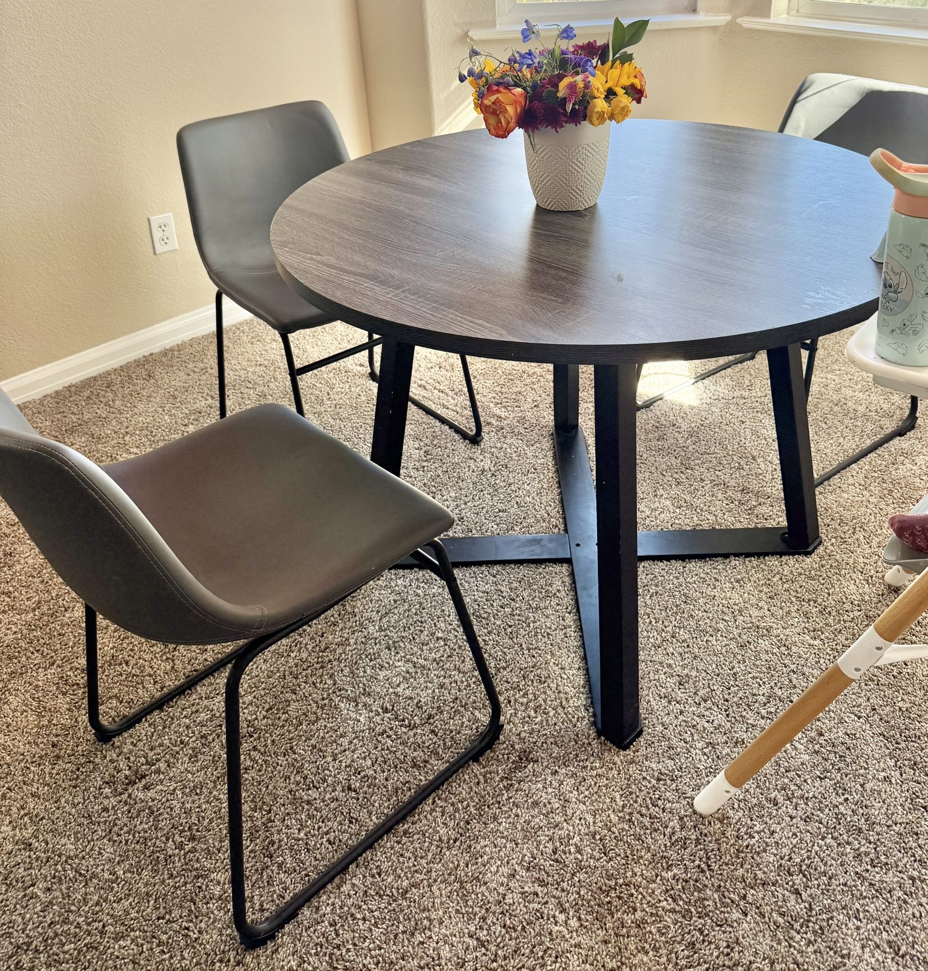 Stunning round gray dining room set, with 3 gray chairs to match Table $130 Chairs $50 each OBO