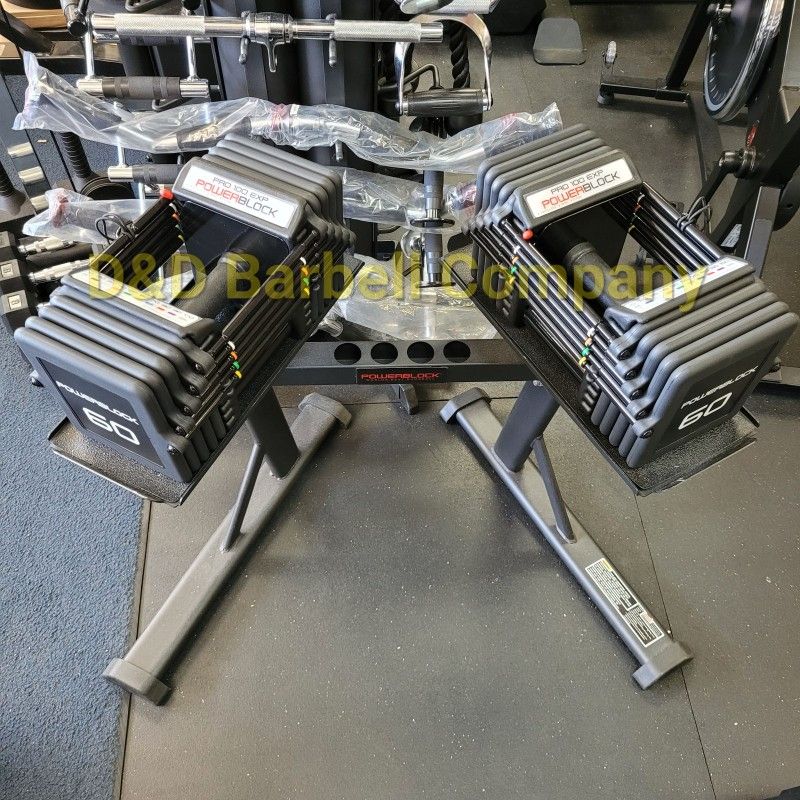 NEW PowerBlock Pro 100 EXP 5lb-60lb Dumbbells PAIR With Stand. Stage 3 And Stage 4 Available