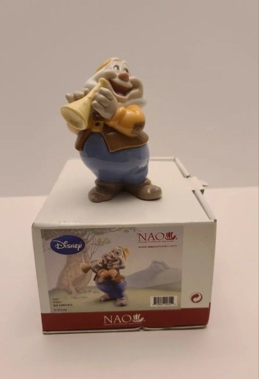 NAO BY LLADRO~ DISNEY'S HAPPY #1815 BRAND NIB SNOW WHITE SEVEN DWARFS~FREE SHIP. Dimensions: 4.75" Height x 3.25" Width. DISNEY HAPPY. This wonderful porcelain piece depicts one of the seven dwarves. Nao have perfected the art of capturing HAPPY'S Joyful and happy personality. This piece is magnificent and a fine addition to any collection. There is some great color and detail on this disney Figurine. It is the perfect addition to any Disney or Nao collection as well as the perfect gift for any friend or loved one! Don't miss this opportunity to purchase this NAO BY Lladro! HAPPY is NEW Open Box, IN ORIGINAL NAO BY LLADRO BOX. A great piece to add to your Disney NAO LLADRO collection. Conditions is New open box w/Original Box and packaging, just taken out for pictures. Conditions is New Open box, a bit of wear to box due to storage nothing major, please see pictures as they are a major part of conditions. No chips, no cracks. Comes with original box. Packaging material, Figurine. It’s very detailed and colorful, great gift for the Disney , NAO, LLADRO, SNOW WHITE AND THE SEVEN DWARFS collector, or just to add to your own personal collection, or if you know Someone who really love and collect these pieces.