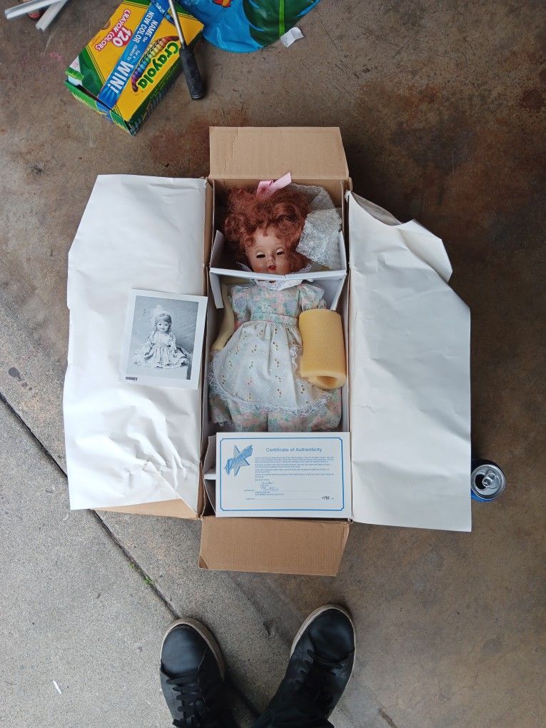 Porcelain doll named Honey is a limited edition and made of the finest quality Porcelain. #0795/1500. It's been open but have been in storage for some time..
