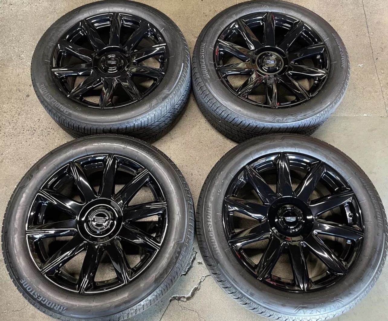 Factory Cadillac Escalade Premium Platinum Luxury 22” OEM Genuine GM 99% Bridgestone Tires 275/50/22 Less than 80miles on the set !! Dark grey chrome titanium smoked original GM Rare Finish FITS any 1999+ GMC Sierra, Chevy Silverado Tahoe Suburban