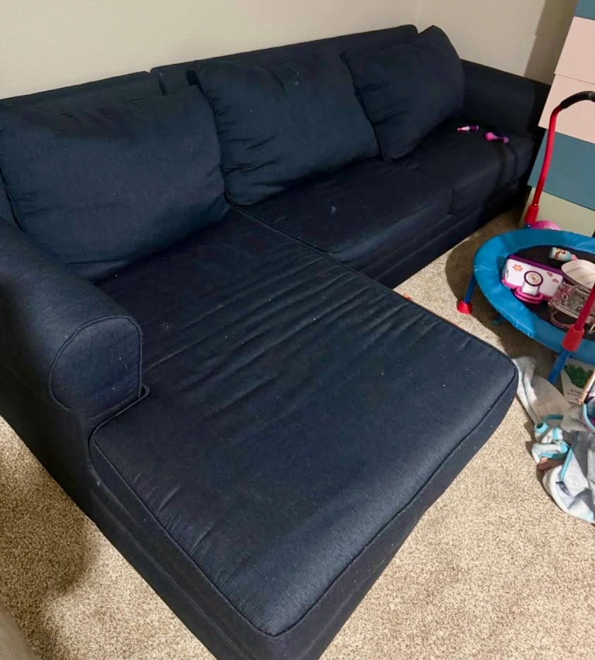 Beautiful Blue Couch Sectional With Queen Size Pull Out Bed