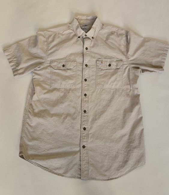 Carhartt button down relaxed fit. Size larg tall. No holes or rips. Good with some light stains throughout.