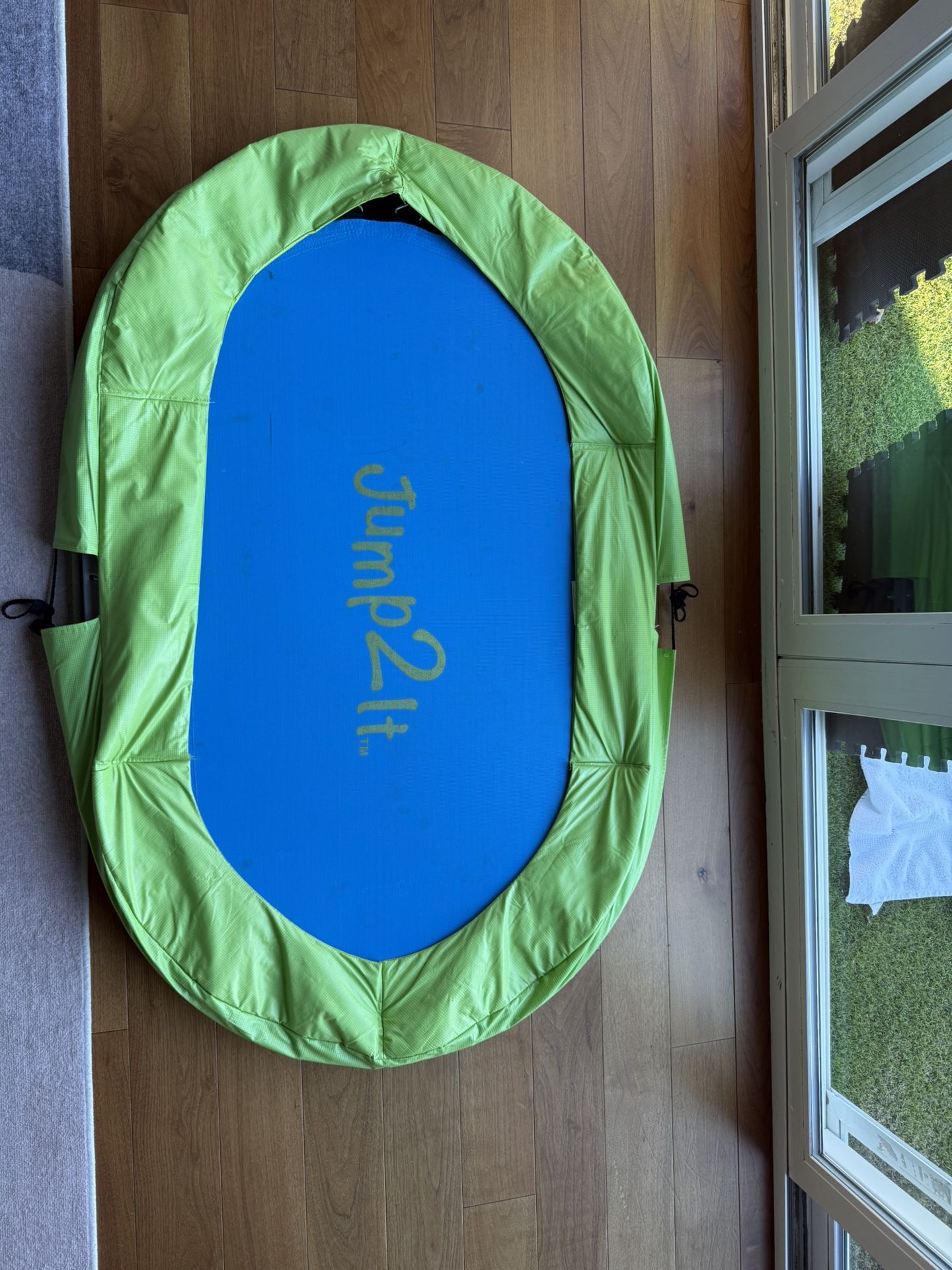 The Jump2It Adjustable Trampoline is a great way to introduce gymnastics and low-impact physical exercise, and the handle helps smaller, younger kiddos develop core strength and dexterity while offering stability. It’s fun for one or two kids at a time, and the adjustable handle (from 24½” to 35″H) means it grows with your kids to provide years of play. When the jumping is over this trampoline is super easy to hide away. The handle folds down for easy storage, and fits under most beds.