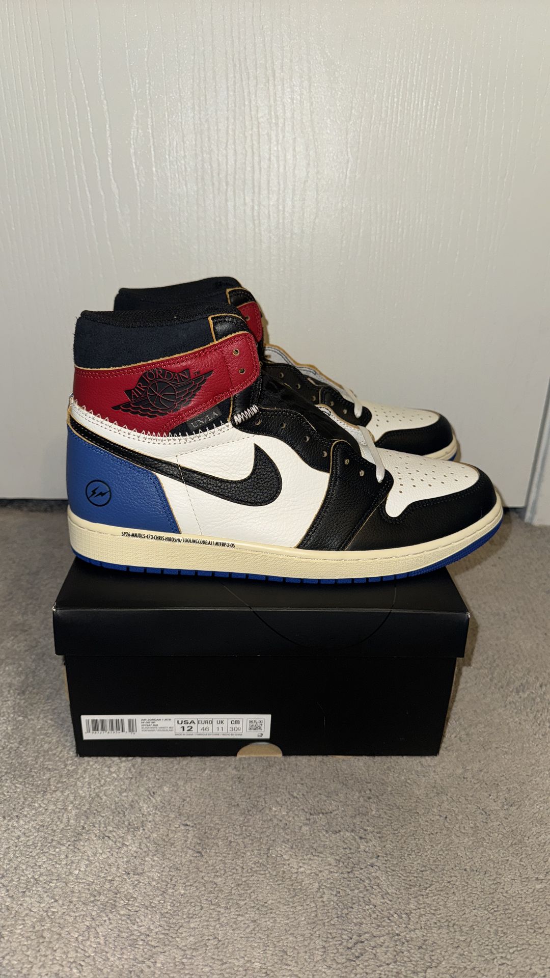 Jordan 1 Retro High OG SP Fragment x Union LA Varsity Red Sport Royal Sz. 12