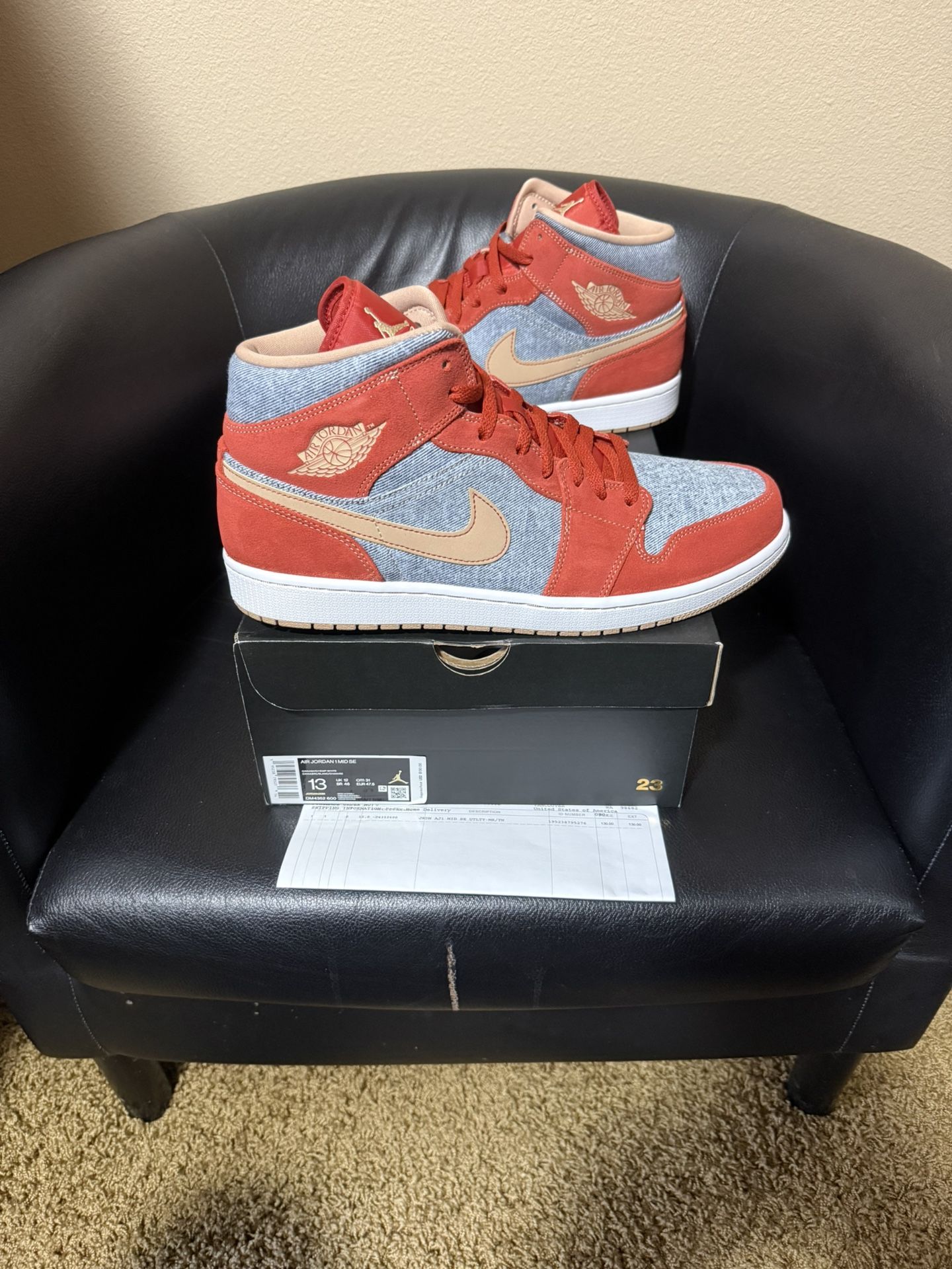 Brand new Air Jordan’s 1 mid Red Denim 1’s size 13 with original box and proof of purchase. No trades cash is king and price is firm. Don’t see these anymore. If you have any questions feel free to ask. $175.00.