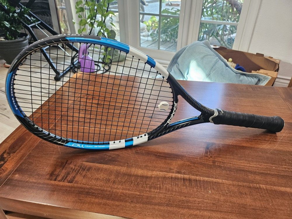 This is a Babalat Drive Max. Only used a handful of gage. It didn't fit my game any better than rackets I already have. New strings Black Code 18 gauge.