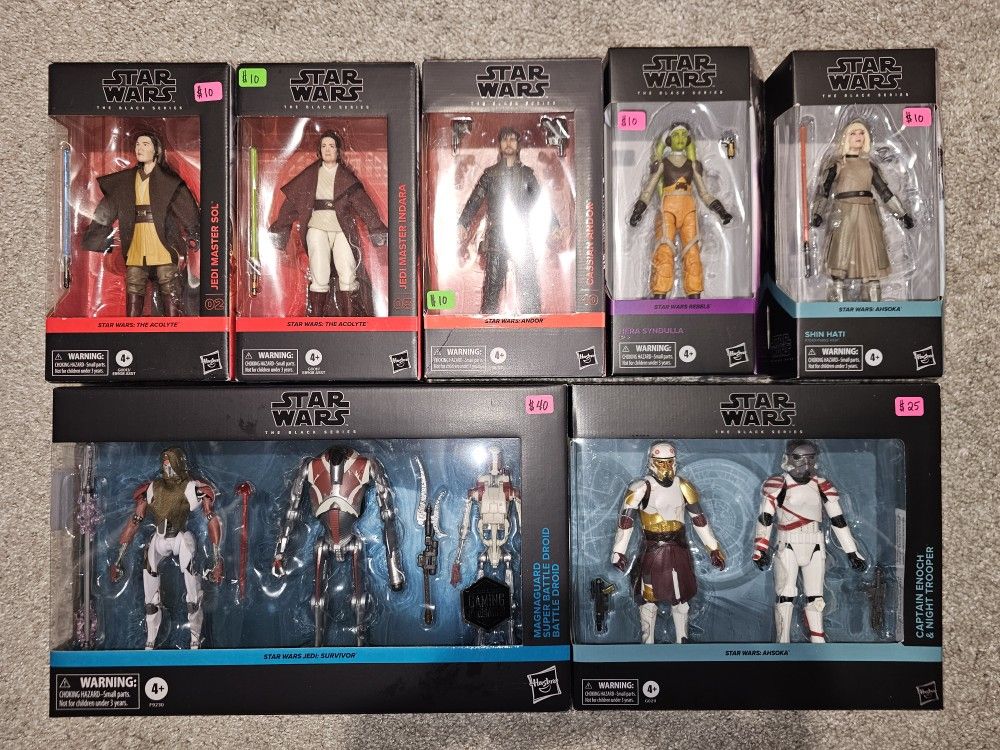 Various STAR WARS Black Series action figures by HASBRO. Brand new. Prices are marked on the boxes