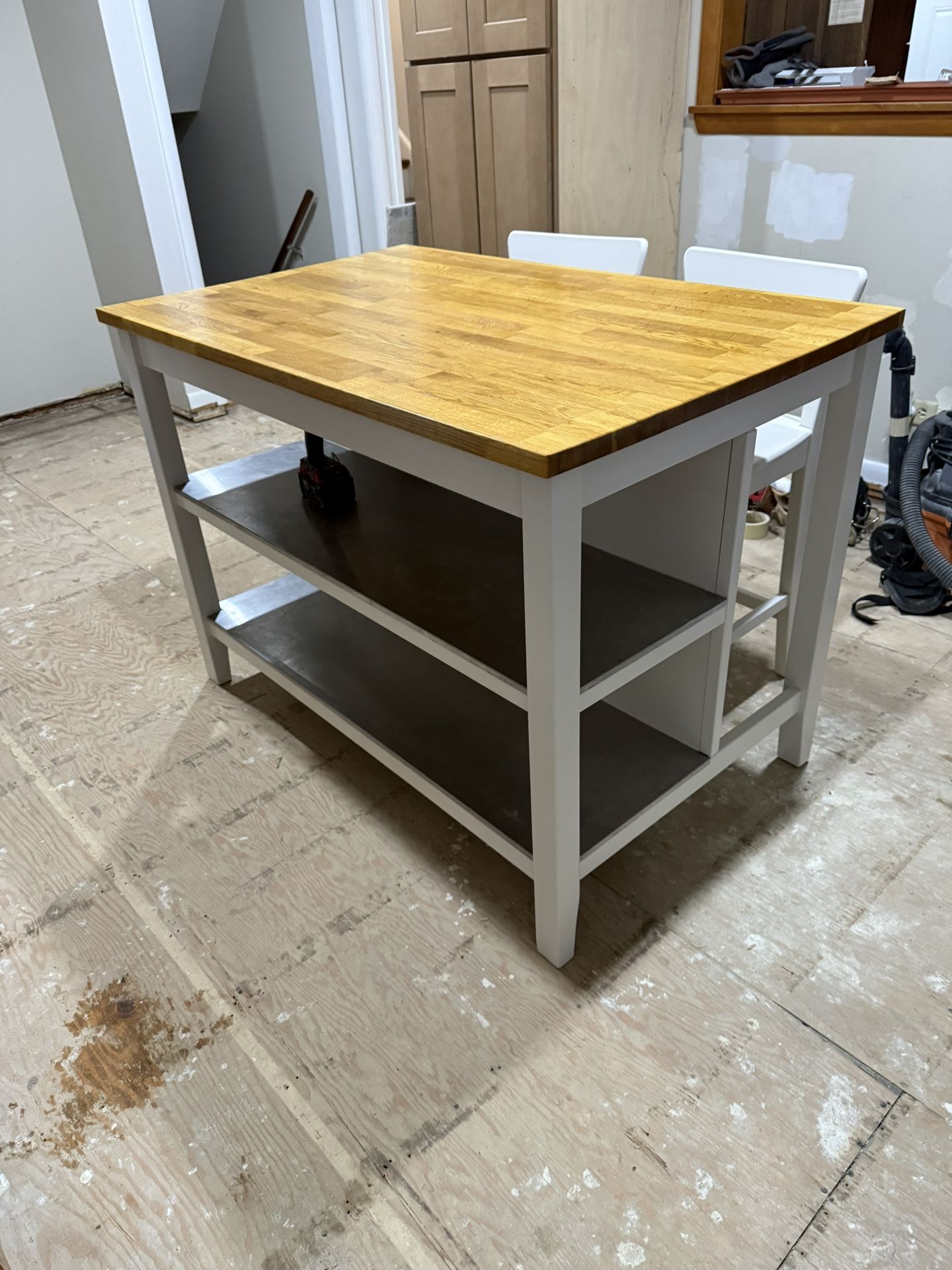 Good Condition kitchen island from ikea Refinished top ikea Bar Stools included island measures 49.5 L × 31 W x 35.5 H