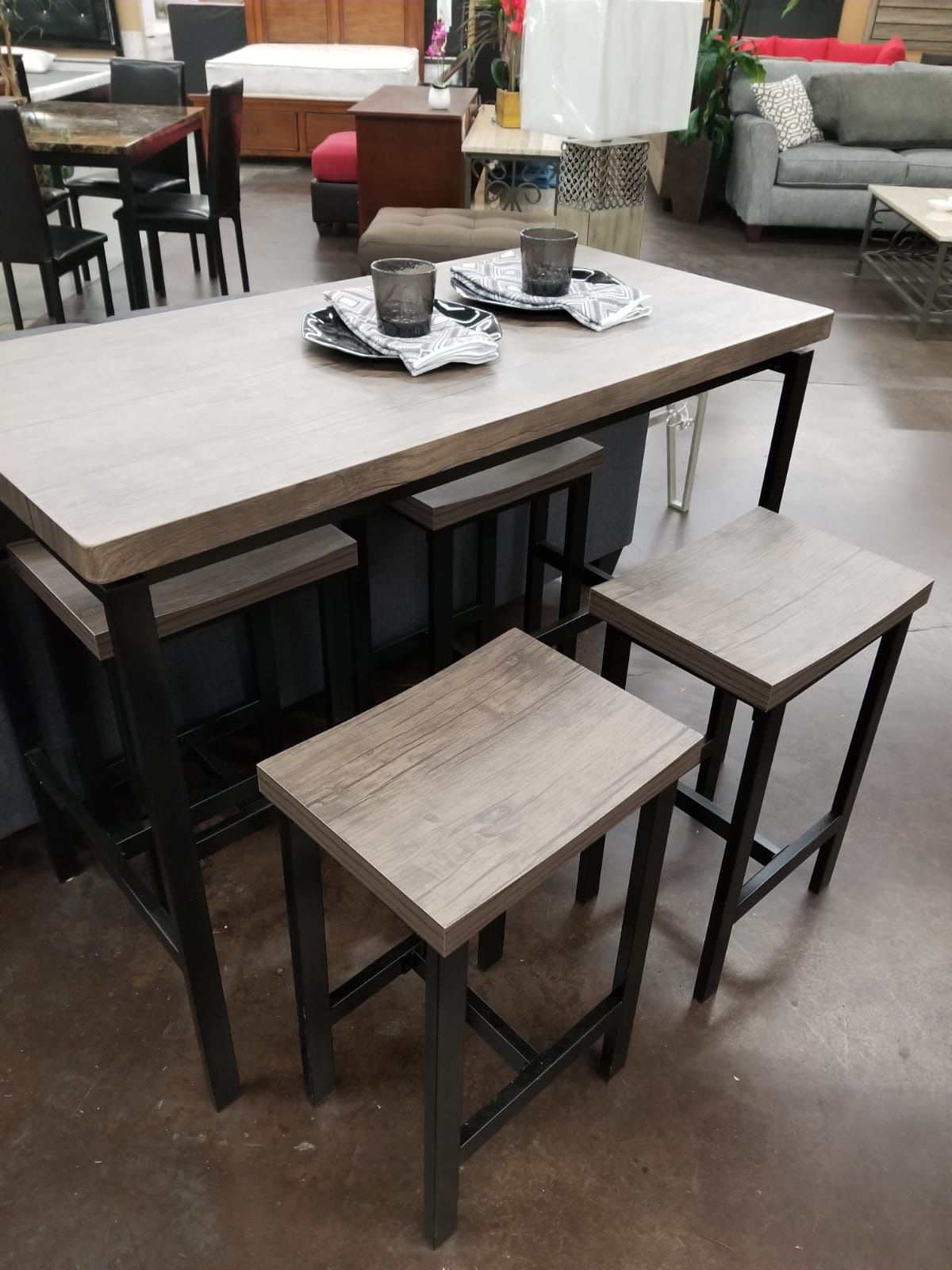 Gray Counter Height Table With 4 Stools