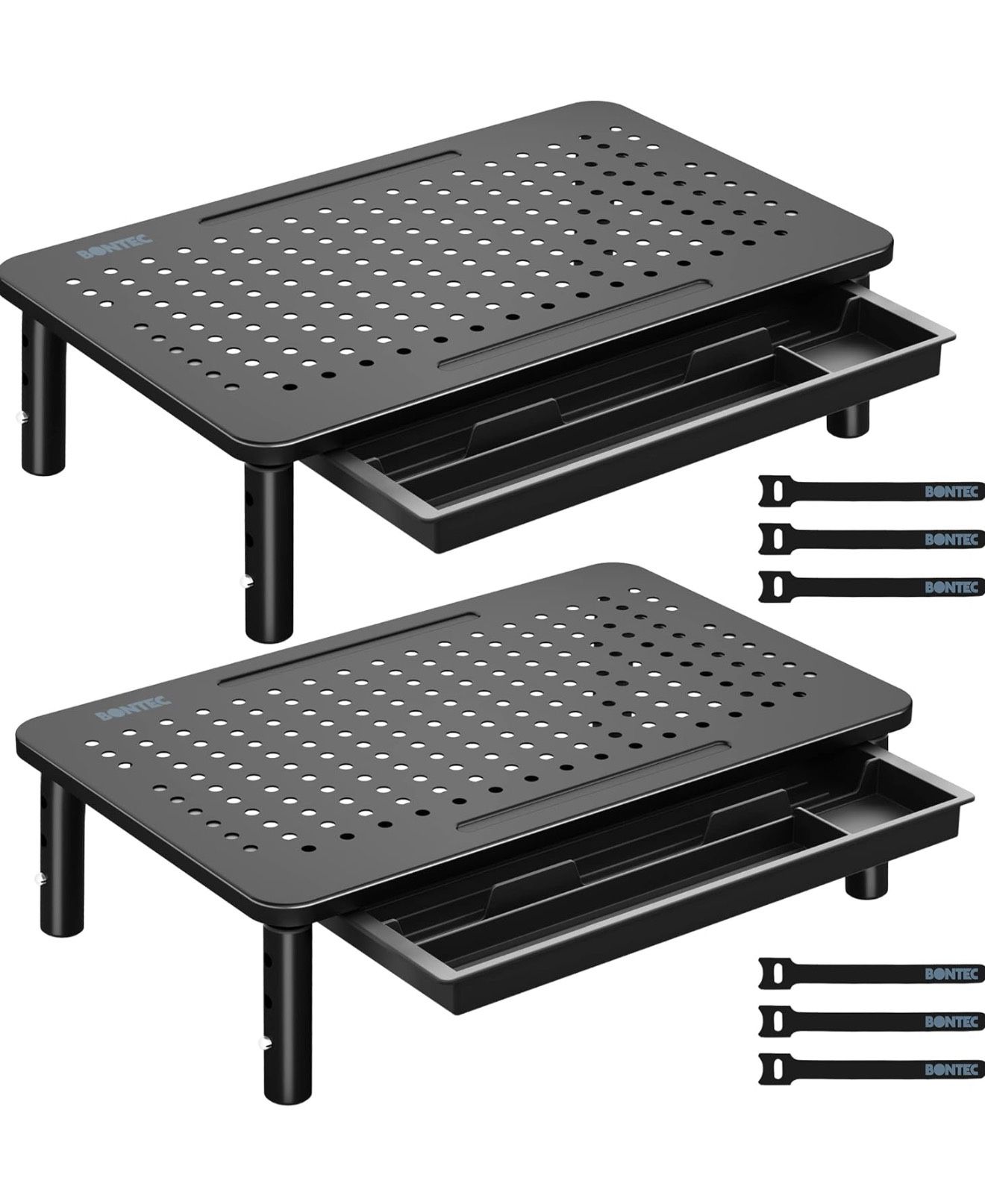 2 Pack Adjustable Monitor Stand Riser with Drawer – Supports Up to 44 lbs