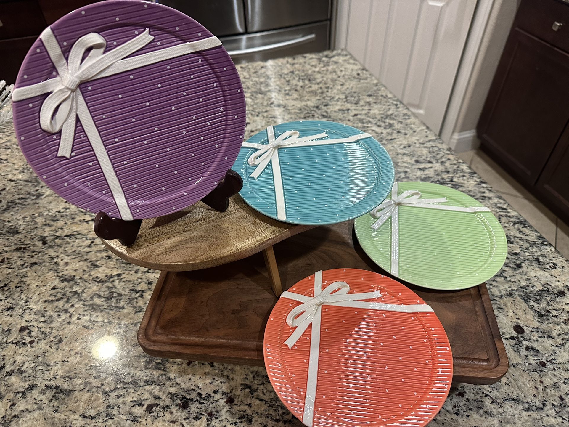 Set of 4 DEPT 56 "Sunday Brunch" Dessert Plates w/Brilliant Springtime Pastels
