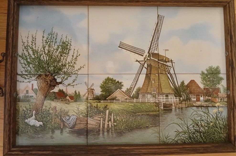 Coen van Hunnik - Dutch Serving Tray with Tiles Also known as JC van Hunnik or Jan van Hunnik, a Dutch artist and painter. One metal handle is missing. Made of Tiles on wood backing. 13" Height, 22" Length, 1.5 Depth Vintage