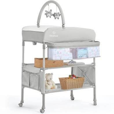Free 🎁with purchase New In Box. Final Sale! Sells for $140 online. Our price $99 33.46” L x 20.47” W x 35” H BabyBond portable changing table-- a lifesaver for new parents who experience the joys of having a newborn while also feeling tired from changing over 2400 diapers in the first year. This advanced changing table is designed with the latest foldable and mobile features, effectively reducing the cleaning mission and saving your spine HEIGHT ADJUSTMENT & MOBILE--The BabyBond baby changing table has upgraded 3 heights adjustment ranging from 33 inches to 35 inches, accommodating adults ranging from 4.8-6 feet tall, eliminating the need to bend or kneel during diaper changes. In addition, the portable changing table has four removable universal wheels with safety locks, making it easily movable from one room to another STORAGE & FOLDABLE: With upgraded storage space, this portable changing table is perfect for storing diapers, clothes, tissues, and other baby products, making diaper changes more convenient and efficient. When not in use, simply press one button to fold it, making it easy to store in a corner, even when children grow up you could remove the wheels and use it as a cabinet EASILY CHANGE DIAPER FOR BABIES: The changing table topper is made of waterproof PVC material that is easy to wipe clean. Two plush toys are included to keep your baby's attention while changing diapers. The scale on the diapery table is more convenient for you to watch your baby's growth BB1009Row2