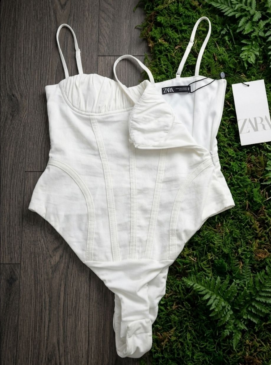NWT Zara White Ruched Bust Corset Bodysuit - Size XS