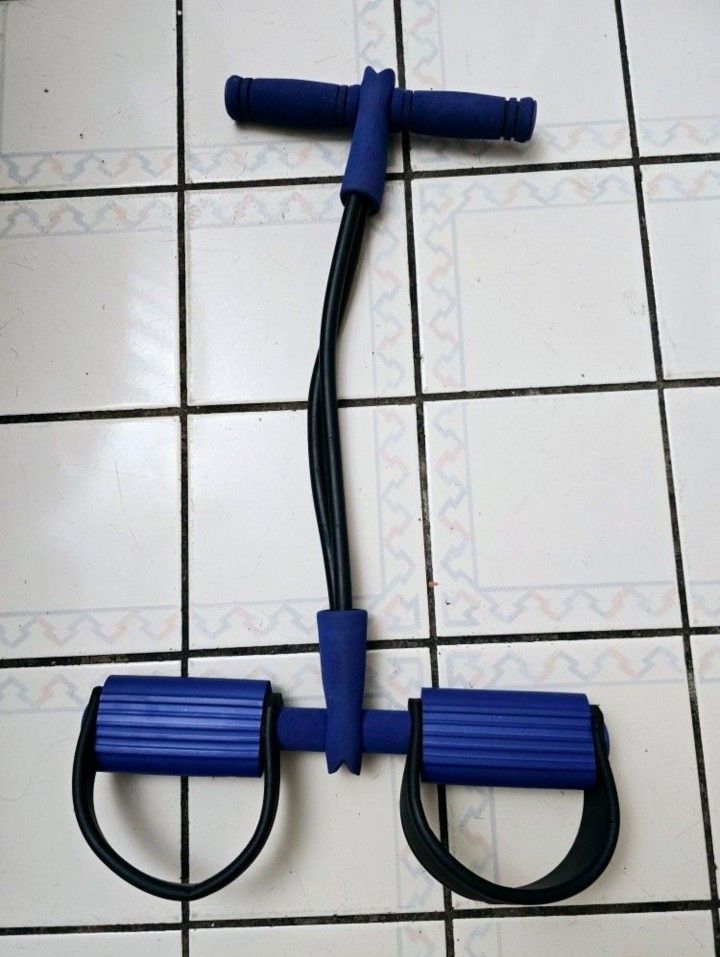 This elastic band tension rope is perfect for home use as a sit-up pedal puller. It is made of rubber material and has a blue color. The resistance band is portable and can be used both indoors and outdoors. It is suitable for various muscle groups such as legs, shoulders, arms, biceps, and abdominal. The item length is 26 inches when unstretched, and it weighs 1 pound. This resistance band is ideal for gym and training activities.