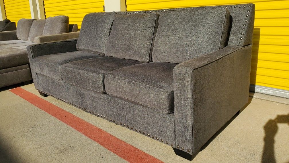 No Deposit / No payments until I deliver. Elegant Ashley studded Grey Sofa Couch is amazing condition. -No rips -No stains -No smoke -No pets Free delivery within 25 miles Further for additional cost just ask.