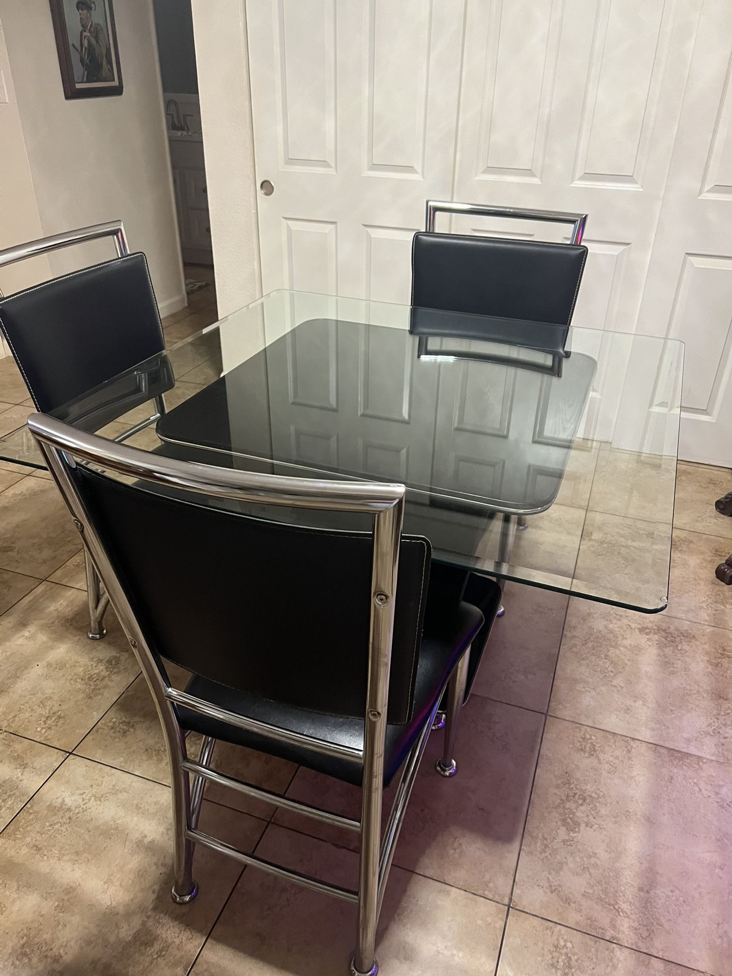 Dining table with three chairs, glass top ,has one small chip .free ….you pick up South Scottsdale by SAGUARO high school