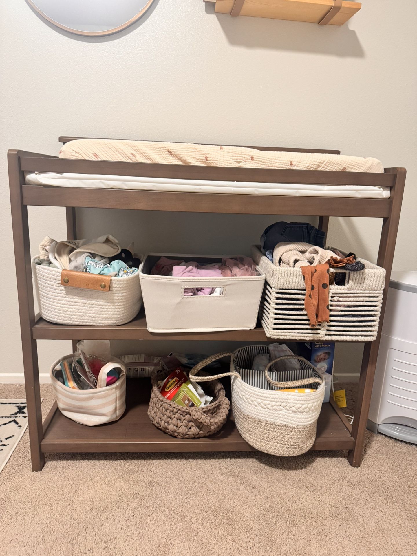 Flat top changing table with 2 shelves. Great condition * diaper changing pad not included * Measures 37.9” L x 19.4” W x 36.2” H ** $50 OBO **