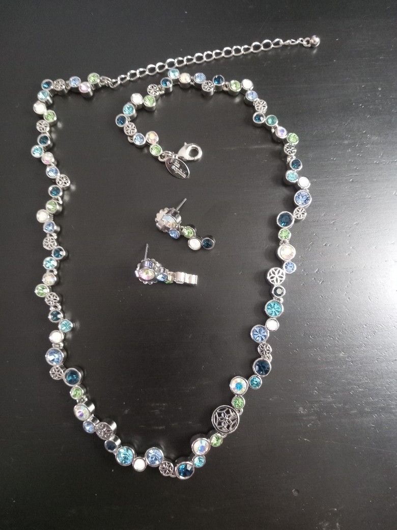 20" silver colored necklace with Aurora Borealis Multi Crystals and matching earrings: 3/4" in length by Lia Sophia