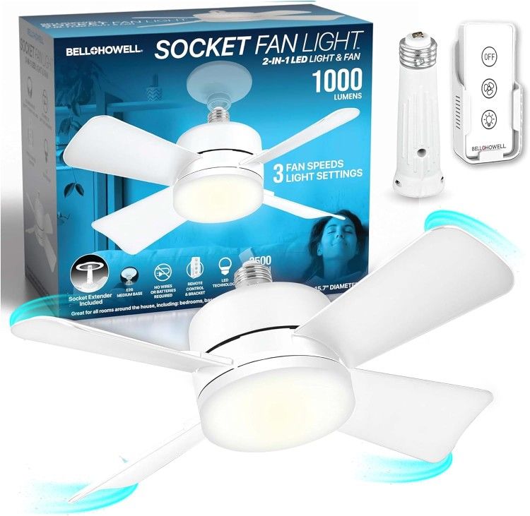 Brand New Bell and Howell Socket Fan Light, a remarkable solution that effortlessly illuminates and cools various areas and locations, from the