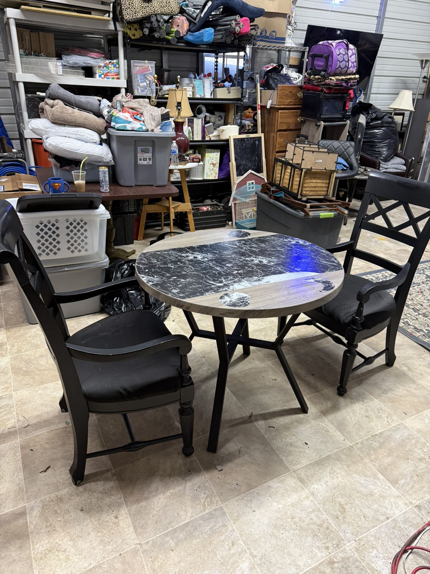 Perfect for a small apartment or small kitchen! The stickers can be removed with a razor blade and patience…only has 2 chairs. Pickup near Costco 29210