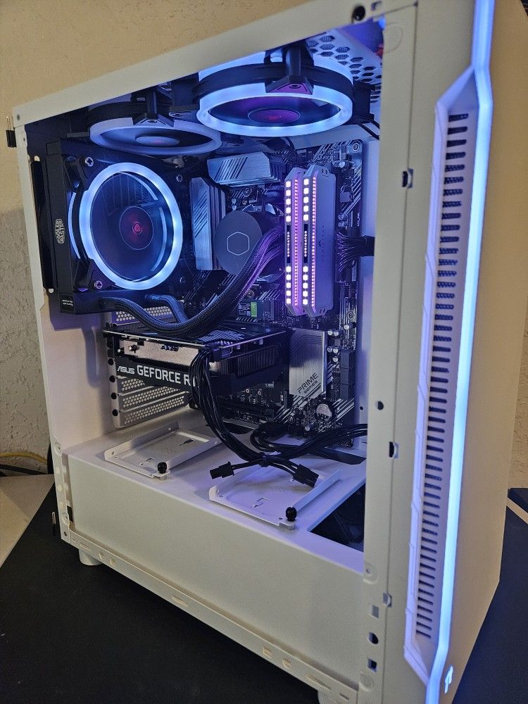 Ryzen 5 Gaming Streaming and Editing PC. Will run anything at Ultra 1080p and Low Medium 1440p including all competitive and e sports games. Pc is plug and play ready. Will trade for Glock variant firearms or PC parts. -Ultra 1080p/ Med 1440p -Gaming Streaming Editing -COD fortnite OW Halo Elden ring D4 Palworld CSGO2 Manor Lords Helldivers 2 -Adressable Rgb Fans/Ram/Mobo Ryzen 5 3600 @4.2ghz cpu Asus Prime b550 Mobo with wifi 16gb Corsair platinum Ddr4 Ram 3200mhz Asus Rtx 3060 12gb Gpu WD Green1tb M.2 Ssd Gamdias P1 600w Psu Thermaltake AtX Case