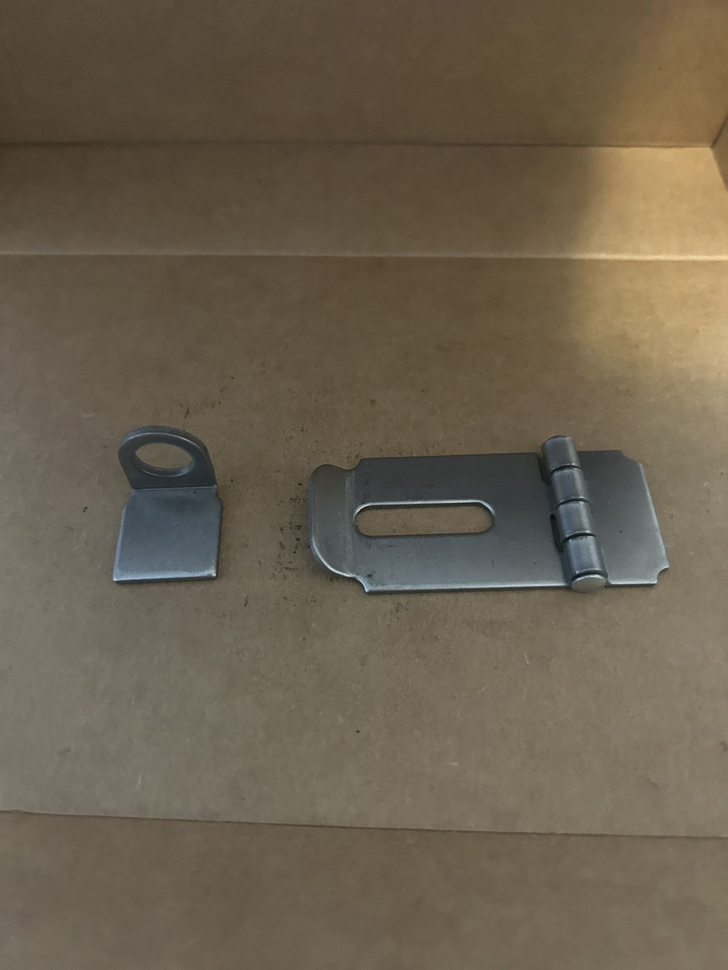 Small steel hasp with Weldable staple. Weldable. Great replacement part for toolboxes, gates, doors, etc. Hasp can be used to add or weld a locking mechanism to a door, toolbox, lockers, safes etc . It’s possible to drill holes in it if you prefer screws or bolts if you don’t have access to welding. This item is shipping only. Same day shipping. Purchased from local manufacturer Triple SSS steel. New. High quality. No rust.