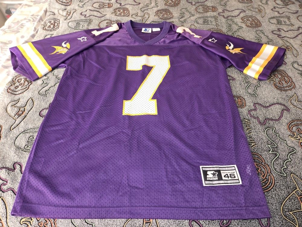The product is a vintage Minnesota Vikings Starter jersey from the 1995 NFL football season featuring player #7, Cunningham. This officially licensed merchandise is a must-have for any fan of the Minnesota Vikings or football enthusiasts in general. Made by Starter, known for their quality sports apparel, this jersey is a unique and nostalgic piece that captures a moment in football history. Perfect for game days, tailgates, or casual wear to show support for your favorite team. Measurements and defects, if any, are shown in pictures. After purchase and feedback is given, we will be sure to return the favor. Thank you for visiting our page and keep an eye out for more amazing items to be listed π