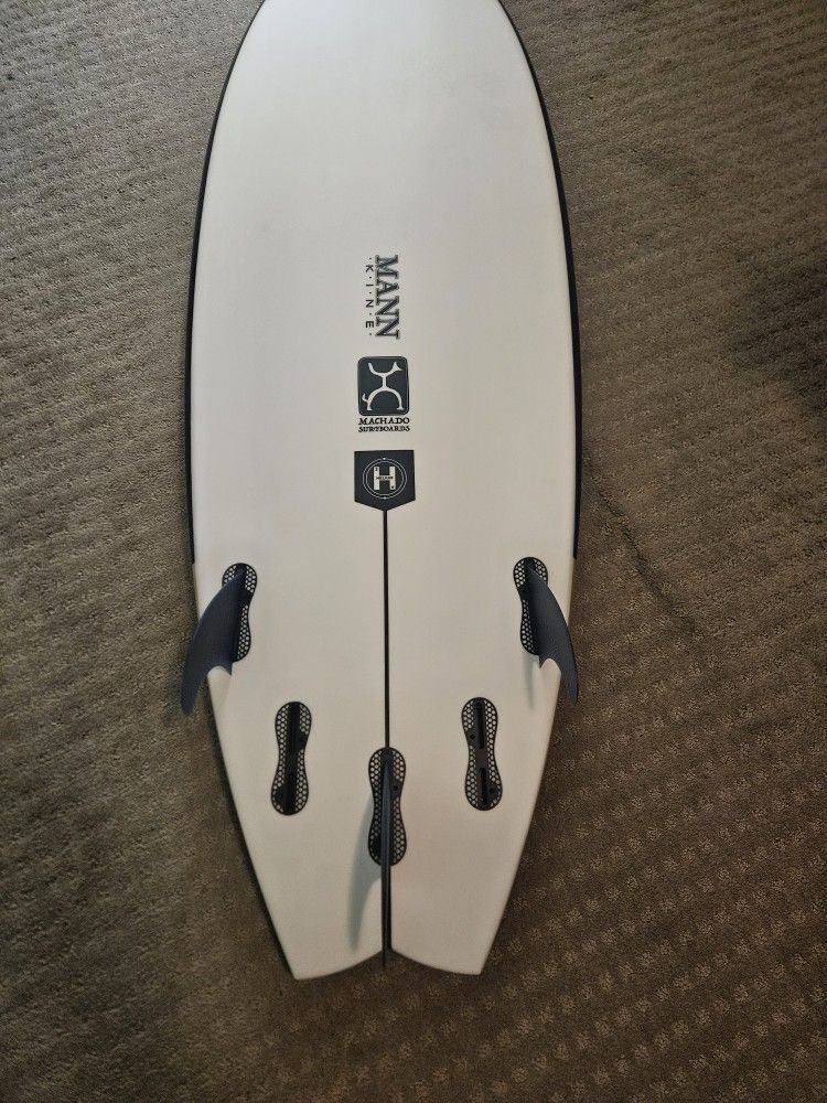Firewire Mashup. 5'6" @31 liters. I am 5'11 and about 200 lb. I like the five six because it rides more on the performance shortboard end Then the 5'8 & 5'10. To me the 5'10 is an absolute log And this is because how it's designed. It functions as if it's got an extra 2.5-3 liters in it. So typically for my performance shortboard I ride between 511s and 6'1 s. For some reason this works for me. I bought two 5'6s, a 5'8 & a 5'10 at the same time with the same setup. As I said I didn't really like the bigger size for this board because it just becomes a different board. So if you're you know 170 to 195 lbs Don't let this deter you because it's a 5'6. It'll end up being a great board for you. This specific board has never been Ridden or been in the water for that matter. So it's showroom condition and comes with a brand new pair of $85 FCS fins. I was attempting to sell it as a package with a brand new top of the line large men's Billabong suit with the booties and gloves. But I wanted to list the board by itself as well. So I'm going to do $525 or best reasonable offer.