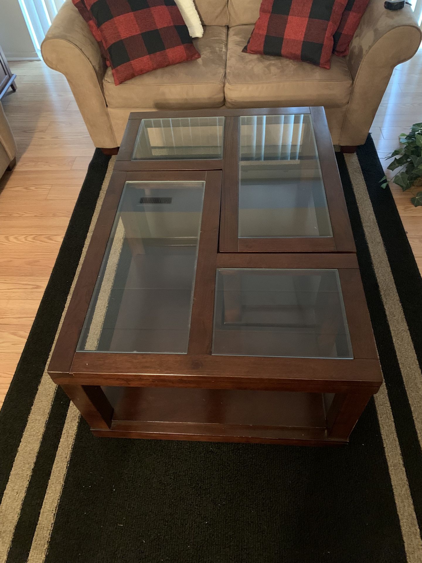 Sectional coffee table you can exchange the wood for the glass on top 45 x 30 x 19
